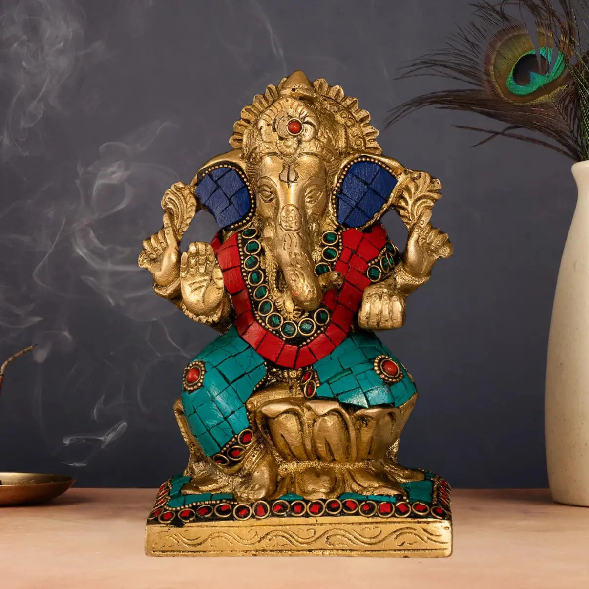 This exquisite brass statue of Lord Ganesh is a masterpiece of craftsmanship.