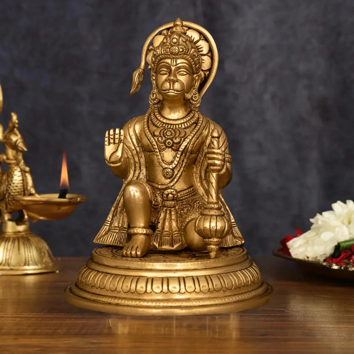 This Lord Hanuman Brass Statue with Stonework is a perfect addition to your Hindu shrine.